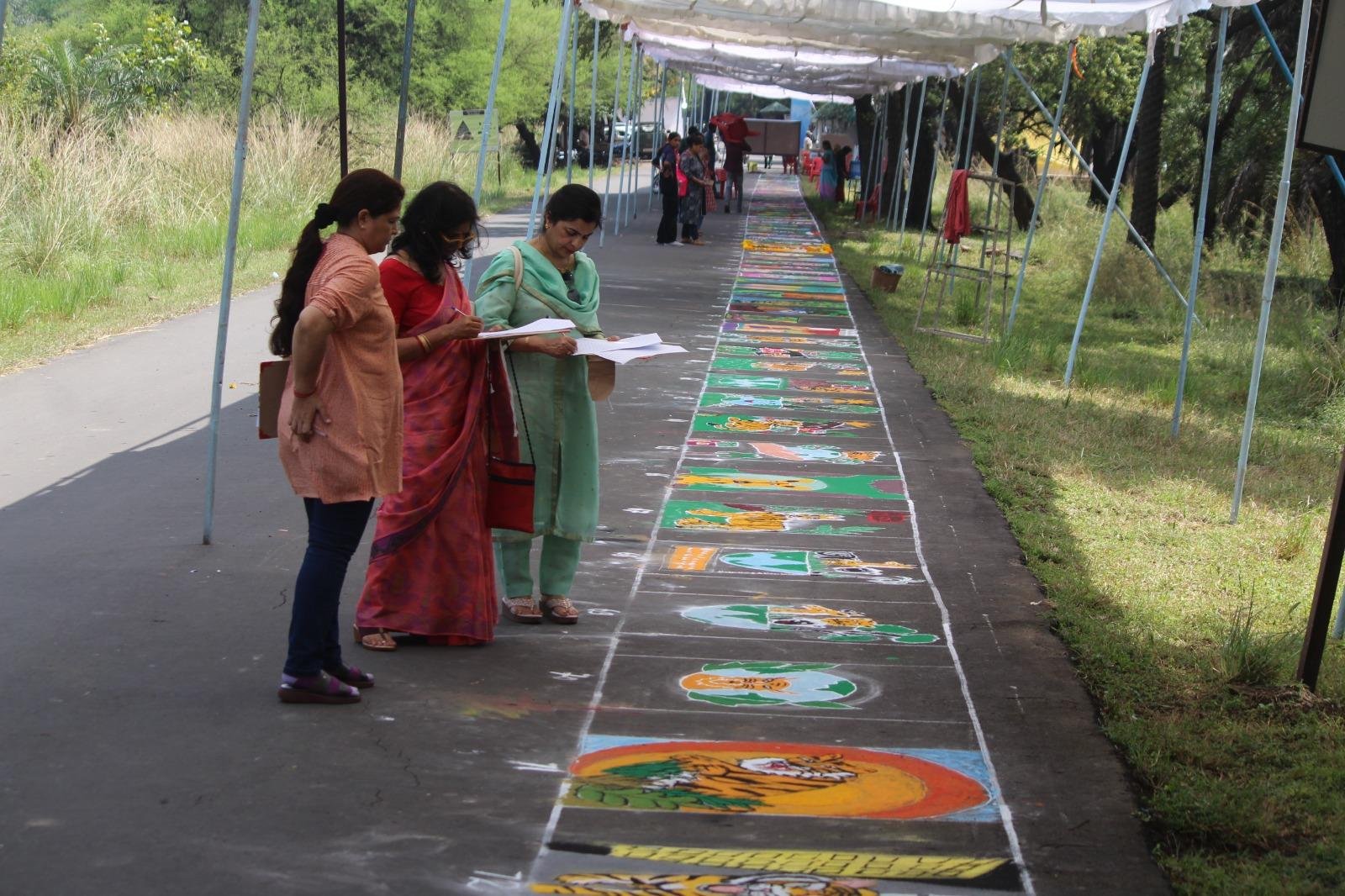 अन्य प्रतियोगिता के रूप में प्रातः 10.00 बजे से रंगोली प्रतियोगिता कक्षा 5 से 8 तक वर्ग हेतु 'मध्यप्रदेश के वन्यजीव एवं कक्षा 9 से महाविद्यालयीन वर्ग हेतु 'शहरी भू भाग में बाघ' विषय पर आयोजित की गई जिसमें कुल 110 प्रतिभागियों ने भाग लिया।