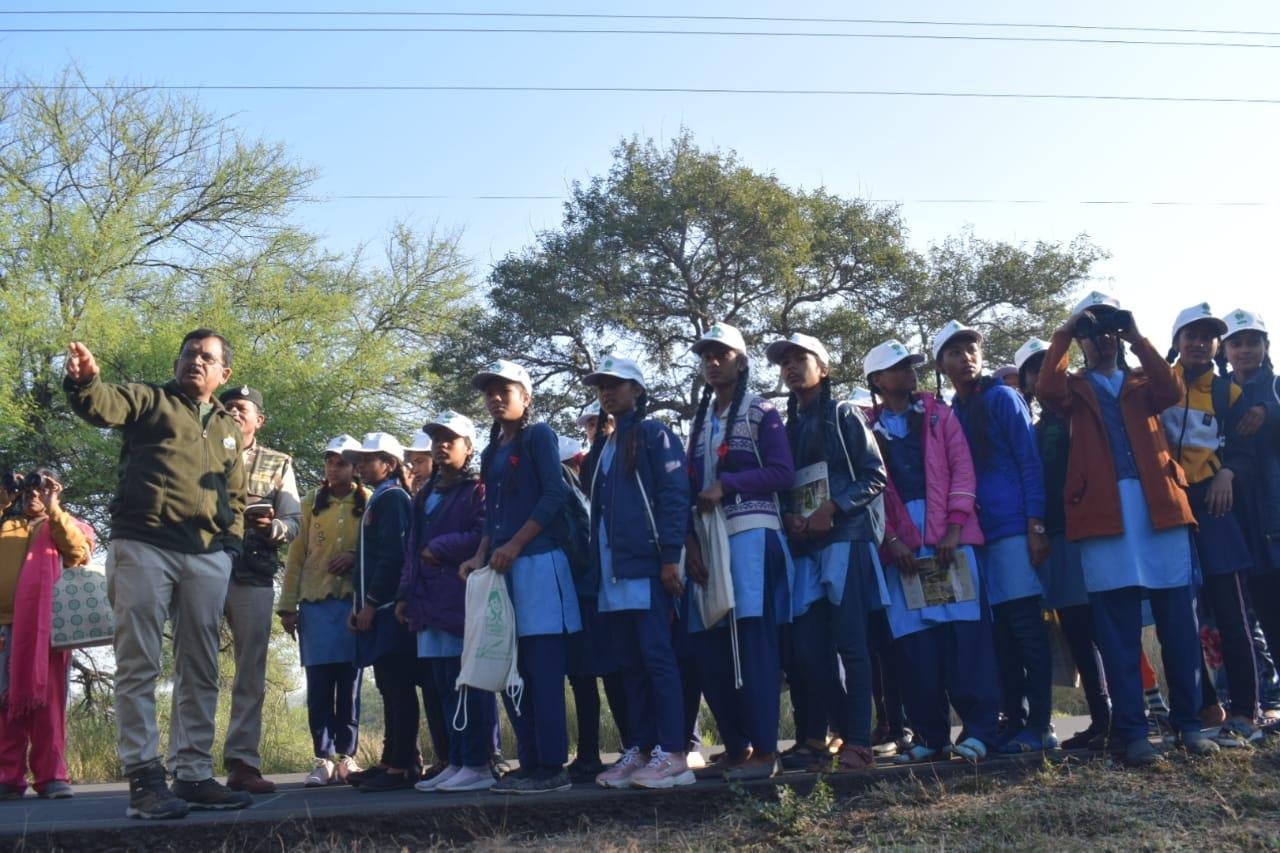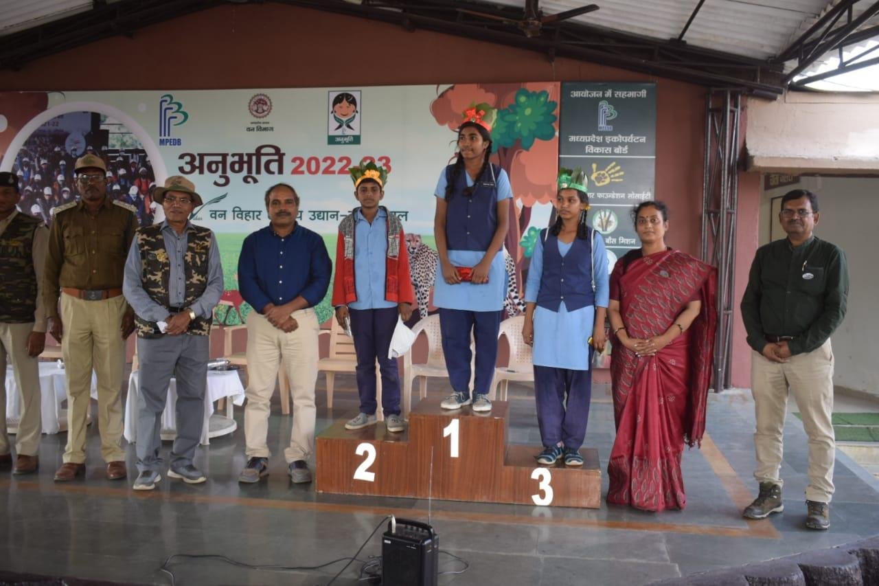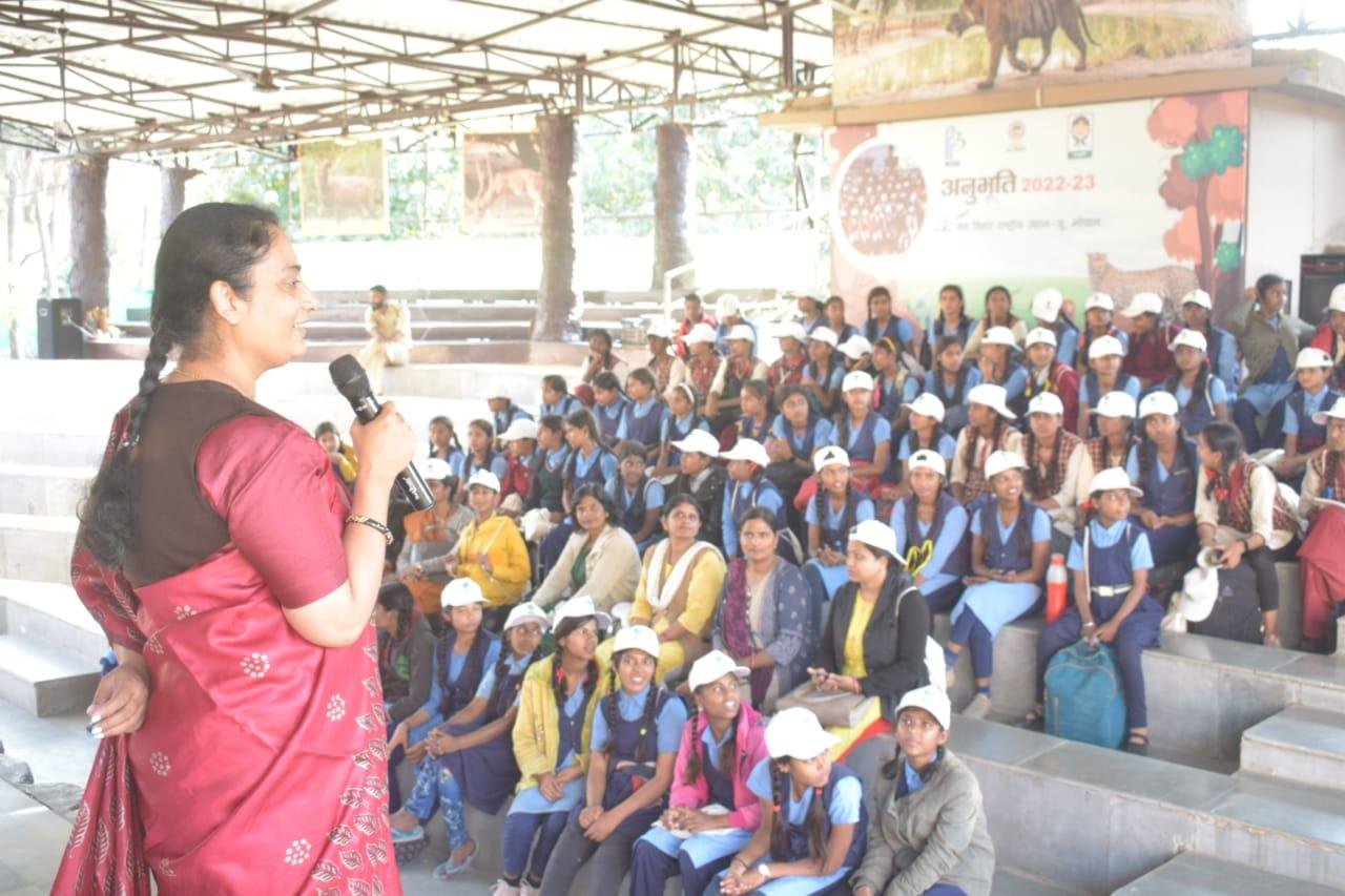 मध्यप्रदेश शासन वन विभाग द्वारा अनुभूति कार्यक्रम 2022-23 के अंतर्गत वन, वन्यप्राणी एवं पर्यावरण संरक्षण के प्रति संवेदनशीलता विकसित करने के उद्देश्य से मध्यप्रदेश ईको पर्यटन विकास बोर्ड के समन्वय से आयोजित प्रशिक्षण सह जागरूकता शिविर के अंतर्गत वन विहार राष्ट्रीय उद्यान में आज दिनांक 22.12.2022 को तृतीय शिविर आयोजित किया गया, जिसमें शासकीय हाई स्कूल हबीबगंज के कुल 112 विद्यार्थियों ने भाग लिया। उक्त शिविर के आयोजन के प्रमुख उद्देश्य है :- विद्यालयों के विद्यार्थियों अर्थात् भविष्य के नागरिकों को वन, वन्यप्राणी एवं पर्यावारण की अनुभूति कराकर, उन्हें उनके संरक्षण हेतु जागरूक एवं प्रेरित करना, विभाग एवं विभागीय अधिकारियों के कार्यो, उत्तरदायित्वों एवं चुनौतियों से विद्यार्थियों को अवगत कराना तथा माननीय प्रधानमंत्री जी द्वारा Mission LiFE “Lifestyle for Environment" के मूल मंत्रों से विद्यार्थियों को अवगत कराना ।