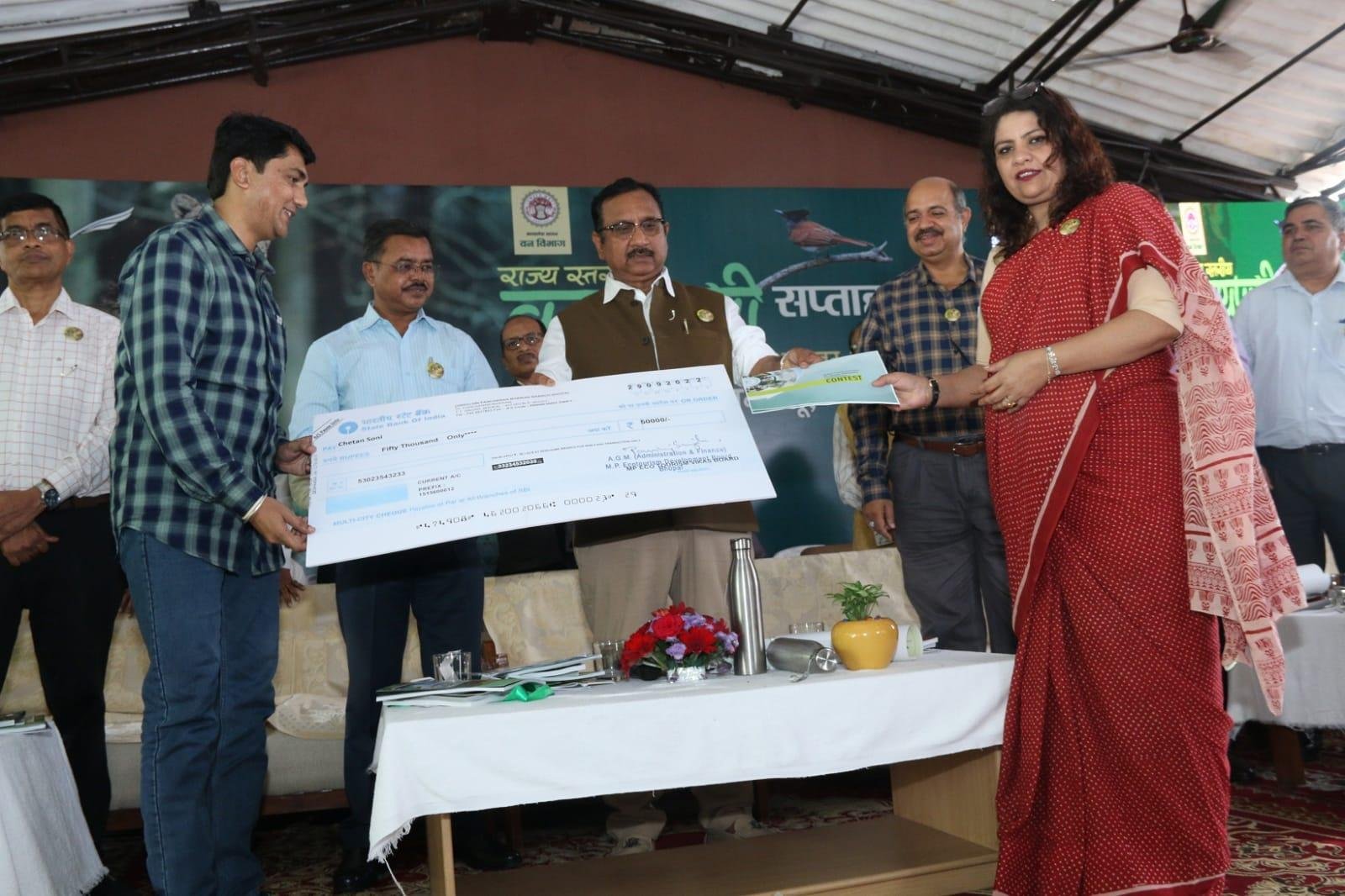 मुख्य अतिथि द्वारा राज्य स्तरी वन्यप्राणी 2022 के विजेता प्रतिभागियों को पुरस्कार एवं प्रमाण पत्र प्रदान किये गये साथ ही पेंच टाईगर रिजर्व में आयोजित डाक्यूमेंट्री फिल्म प्रतियोगिता के विजेता प्रतिभागियों को भी पुरस्कृत किया गया। साथ ही मुख्य अतिथि द्वारा विभिन्न वर्गो में वन्यप्राणी संरक्षण हेतु किये गये उत्कृष्ट कार्यों के लिये अधिकारियों/कर्मचारियों को वन्यप्राणी संरक्षण पुरस्कार एवं प्रशस्ति पत्र प्रदान किये गये तथा म.प्र. ईको पर्यटन विकास बोर्ड द्वारा आयोजित फोटोग्राफी प्रतियोगिता, वीडियोग्राफी प्रतियोगिता एवं ट्रेकिंग रूट प्रतियोगिता के विजेता प्रतिभागियों को भी पुरस्कृत किया गया।