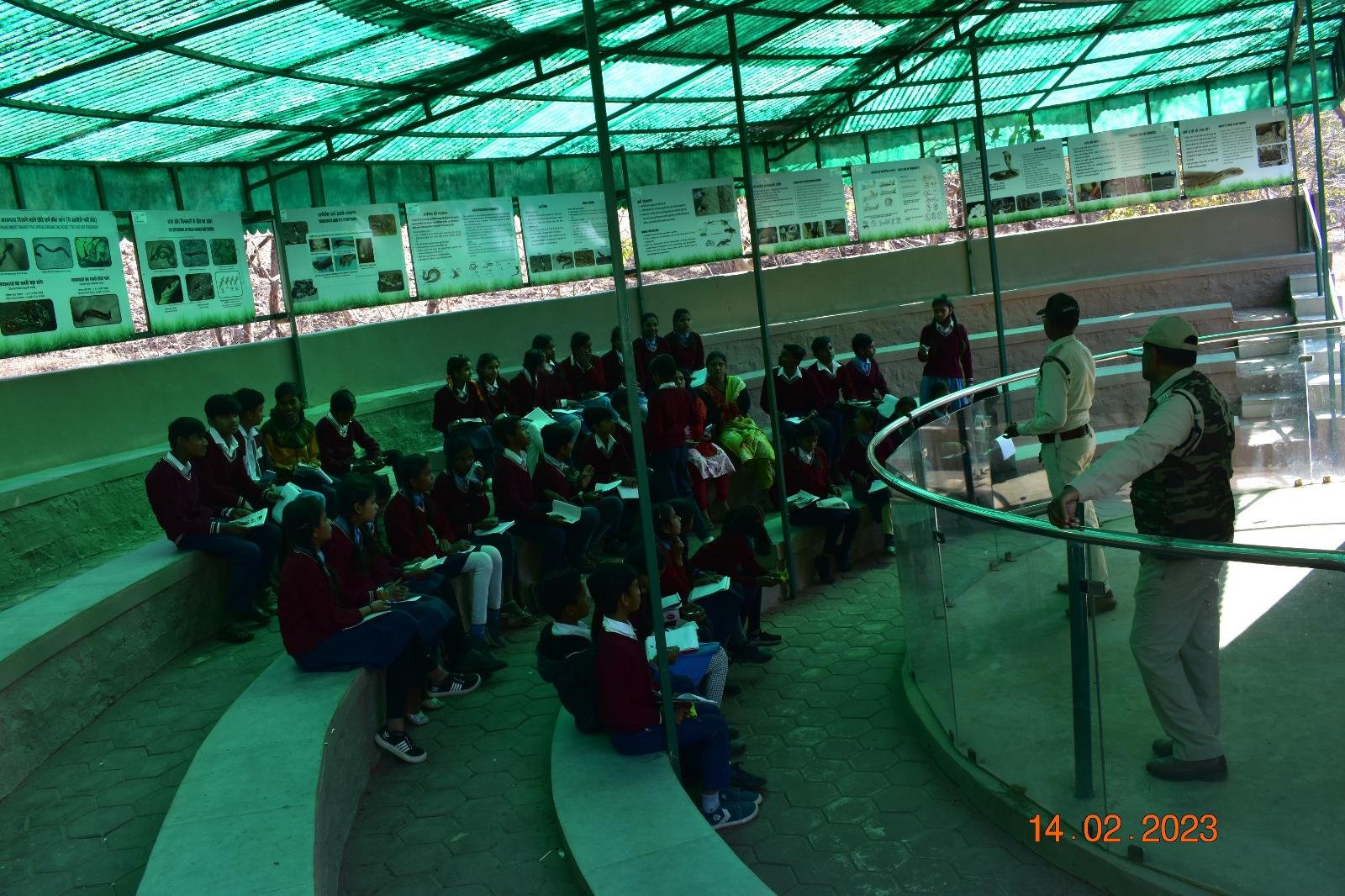 वन विहार राष्ट्रीय उद्यान, जू भोपाल में छात्र - छात्राओं में वन, वन्यप्राणियों एवं पर्यावरण के प्रति जागरूकता तथा प्रकृति संरक्षण के प्रति संवेदनशीलता विकसित करने की दृष्टि से भोपाल शहर एवं उसके आस-पास के ग्रामों के शासकीय विद्यालयों के विद्यार्थियों के लिये एक दिवसीय नेचर कैम्प आयोजित किये जा रहे हैं। इसी क्रम में आज दिनांक 14.02.2023 को शासकीय उच्चतर माध्यमिक विद्यालय बावड़ियाकला भोपाल के 41 विद्यार्थियों ने उक्त नेचर कैम्प में भाग लिया। कार्यक्रम में स्रोत व्यक्ति रूप में मो. खालिक, भोपाल बर्ड्स भोपाल उपस्थित रहे। विषय विशेषज्ञों द्वारा प्रतिभागियों को पक्षी दर्शन, वन्यप्राणी दर्शन, फिल्म शो, स्थल पर विद्यमान वानिकी गतिविधियों की जानकारी, वन, वन्यप्राणी व पर्यावरण से संबंधित रोचक गतिविधियाँ कराई गई एवं जानकारी प्रदान कर उनकी जिज्ञासाओं को शांत किया गया। इसके अतिरिक्त बाघ, तेंदुआ, भालू, मगर, घड़ियाल, चीतल, सांभर, नीलगाय आदि वन्यप्राणियों का भी अवलोकन किया। इस दौरान संचालक वन विहार श्रीमती पदमाप्रिया बालाकृष्णन, सहायक संचालक वन विहार श्री एस. के. सिन्हा एवं अन्य अधिकारी कर्मचारी उपस्थित रहे । आगामी कैम्प दिनांक 21.02.2023 को आयोजित किया जायेगा, जिसमें शासकीय उच्चतर माध्यमिक विद्यालय खजूरीकला भोपाल के विद्यार्थी भाग लेंगे।