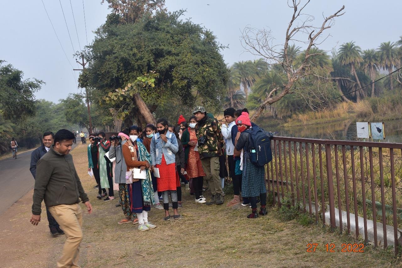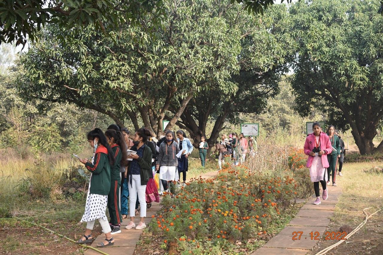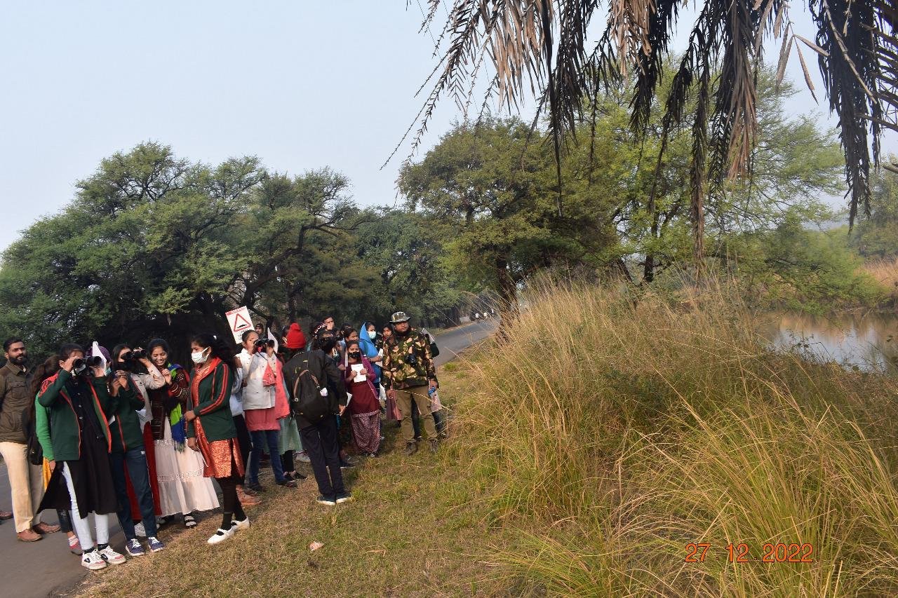 वन विहार राष्ट्रीय उद्यान, जू भोपाल में छात्र - छात्राओं में वन, वन्यप्राणियों एवं पर्यावरण के प्रति जागरूकता तथा प्रकृति संरक्षण के प्रति संवेदनशीलता विकसित करने की दृष्टि से भोपाल शहर एवं उसके आस-पास के ग्रामों के शासकीय विद्यालयों के विद्यार्थियों के लिये एक दिवसीय नेचर कैम्प आयोजित किये जा रहे हैं। इसी क्रम में आज दिनांक 27.12.2022 को शासकीय नवीन कन्या उच्चतर माध्यमिक विद्यालय तुलसी नगर के 54 विद्यार्थियों ने उक्त नेचर कैम्प में भाग लिया। कार्यक्रम में स्रोत व्यक्ति रूप में श्री ए. के. खरे, सेवा निवृत उप वन संरक्षक तथा पक्षीविद के रूप में डॉ. संगीता राजगीर तथा मो. खालिक भोपाल बर्ड्स भोपाल उपस्थित रहे । विषय विशेषज्ञों द्वारा प्रतिभागियों को पक्षी दर्शन, वन्यप्राणी दर्शन, फिल्म शो, स्थल पर विद्यमान वानिकी गतिविधियों की जानकारी, वन, वन्यप्राणी व पर्यावरण से संबंधित रोचक गतिविधियॉ कराई गई एवं जानकारी प्रदान कर उनकी जिज्ञासाओं को शांत किया गया। भ्रमण के दौरान प्रतिभागियों ने विभिन्न प्रजातियों का दर्शन किये जिसमें प्रमुख है ग्रीन बी ईटर, टिटहरी, पोंड हेरोन, रेड मुनिया, इग्रेट, मेग पाई राबिन, मूरहैन, ड्रोंगो, ब्रोंज विंग जकाना, किंगफिशर, विहिस्लिंग टील्सकार्मोरेंट, सिल्वर बिल मुनिया आदि । तितलियों में ब्लू टाईगर, क्रीमसन रोज, ग्रे पेनसी, प्लेन टाईगर, कॉमन ईवनिंग ब्राउन, कॉमन ग्रास यलो आदि को देखकर प्रतिभागी उत्साहित हो उठे। इसके अतिरिक्त बाघ, तेंदुआ, भालू, मगर, घड़ियाल, चीतल, सांभर, नीलगाय, सरीसर्प आदि वन्यप्राणियों का भी अवलोकन किया। इस दौरान संचालक वन विहार श्रीमती पदमप्रिया बालाकृष्णन एवं अन्य अधिकारी कर्मचारी भी उपस्थित रहे। कैम्प का संचालन सहायक संचालक वन विहार श्री सुनील कुमार सिन्हा द्वारा किया गया।