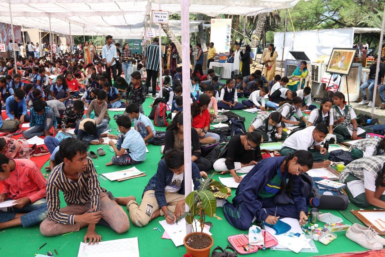 On the first day of the Wildlife Week, a painting competition was held in the Van Vihar Gallery. In the competition the topics were, “Wildlife of Van Vihar” for class one to five, “Natural beauty of forest” for class six to eight, “Our animals in an Ecosystem” ” for class nine to twelve , “My favorite eco-tourism site in Madhya Pradesh” for college students, and a differently abled participants any topic for their choice. About 1085 participants from about 59 educational institutions participated in the competition.